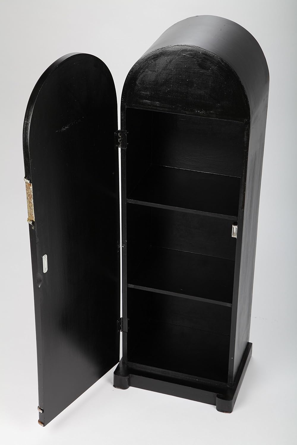 Originale e funzionale, questo mobiletto alto firmato Vacchetti è un pezzo unico che unisce stile vintage e praticità. Realizzato in legno e dipinto di nero, riproduce fedelmente l’estetica di un jukebox d’altri tempi. Dotato di un’anta e due mensole interne che creano tre comodi ripiani, è perfetto per riporre scarpe, accessori o altri oggetti, adattandosi facilmente anche agli spazi più ridotti grazie alla sua struttura slanciata.